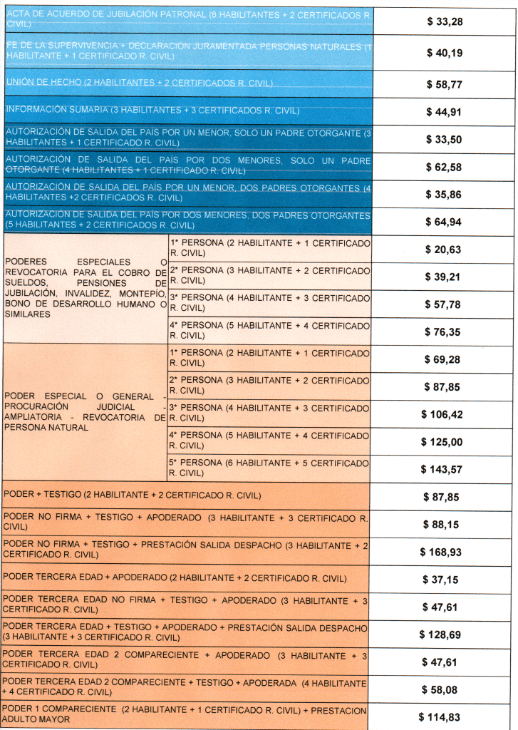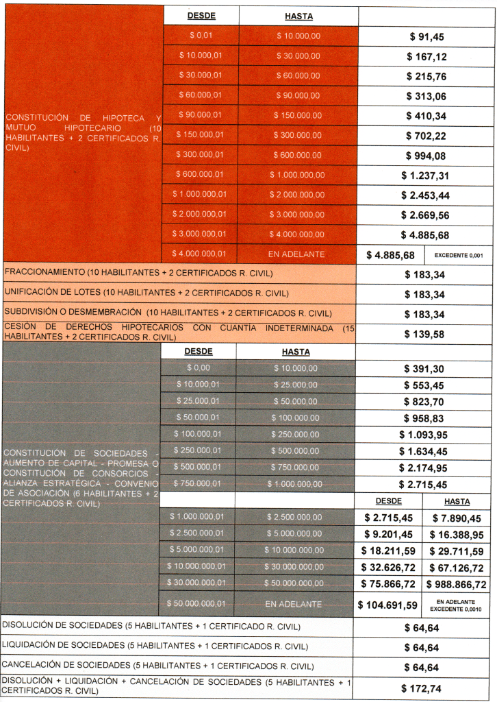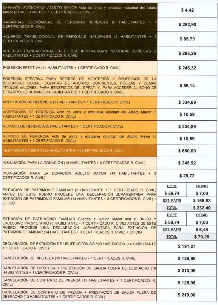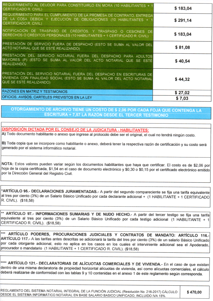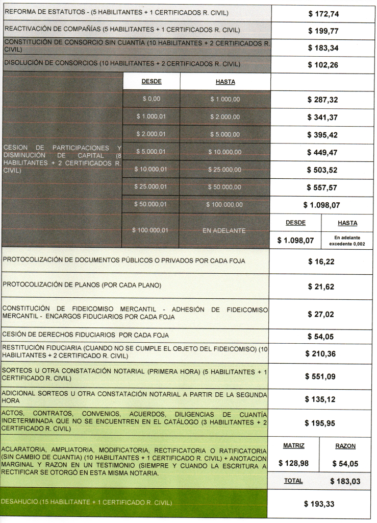 Ponemos a disposición de los colegas, clientes y público en general, las TARIFAS NOTARIALES ECUADOR 2025, para que puedan gestionar sus trámites de toda índole.